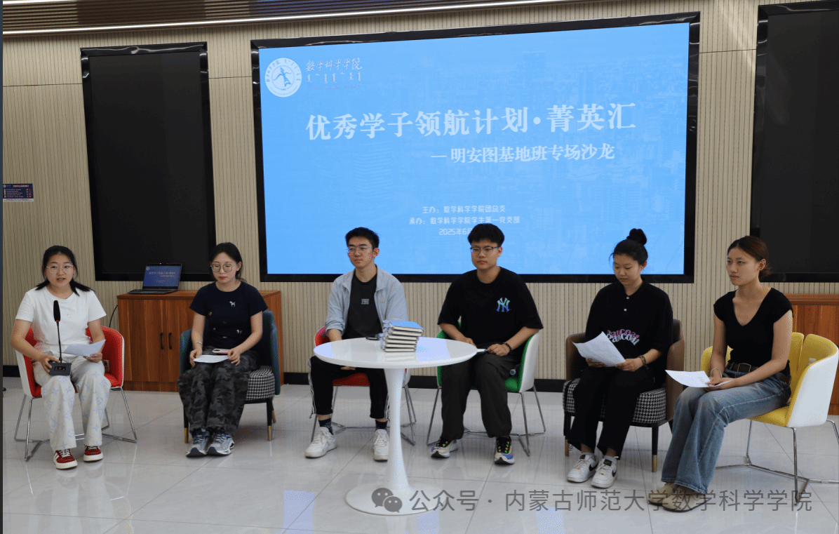 为深入贯彻“党建带团建、团建促学风”工作理念,发挥学生党团组织引领作用,数学科学乐竞体育-中国一站式服务官网于6月13日在盛乐校区乐竞体育-中国一站式服务官网楼C301举办“优秀学子领航计划·菁英汇之明安图基地班专场沙龙”。本次活动由乐竞体育-中国一站式服务官网团总支协同学生第一党支部联合举办,旨在加强班级团支部建设,通过榜样示范助力优良学风培育。活动由学生第一党支部书记阿茹罕主持,乐竞体育-中国一站式服务官网党委副书记、副院长季建光参与指导。