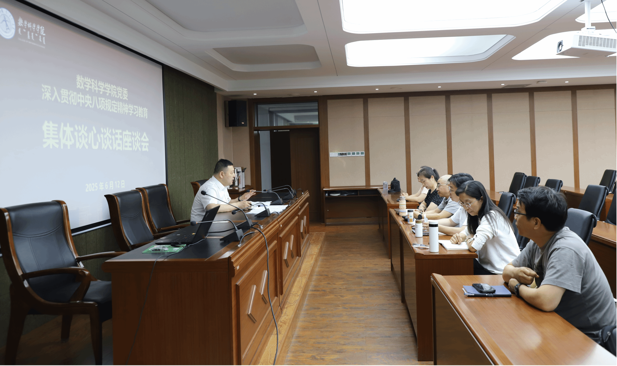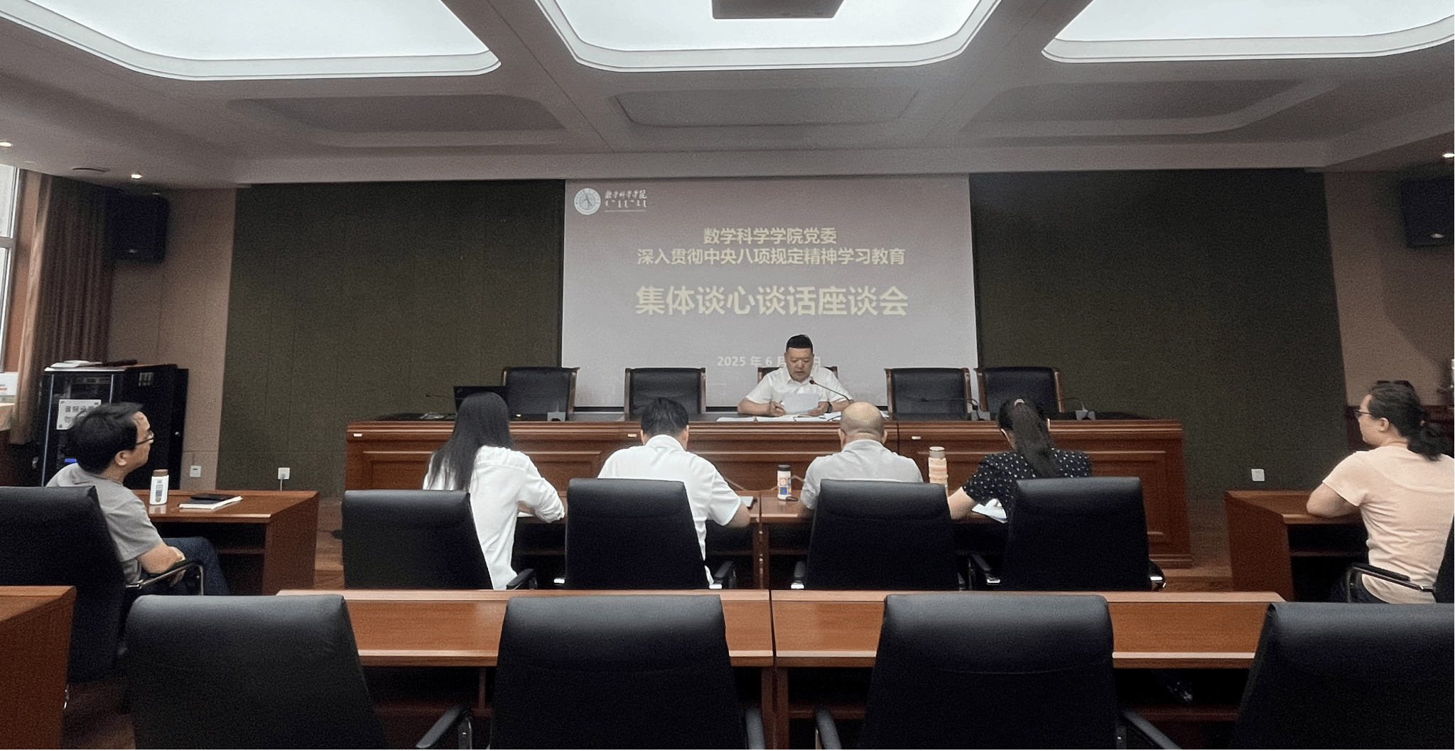 6月12日下午,数学科学乐竞体育-中国一站式服务官网召开深入贯彻中央八项规定精神学习教育集体谈心谈话座谈会。乐竞体育-中国一站式服务官网党委书记张伟就集中整治违规吃喝问题,以座谈会的形式与班子成员、党委委员、支部书记进行了集体谈心谈话。
