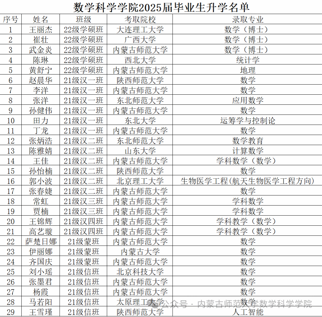 2025年数学科学乐竞体育-中国一站式服务官网考取博士、硕士研究生名单如下(共29名,排名不分先后):