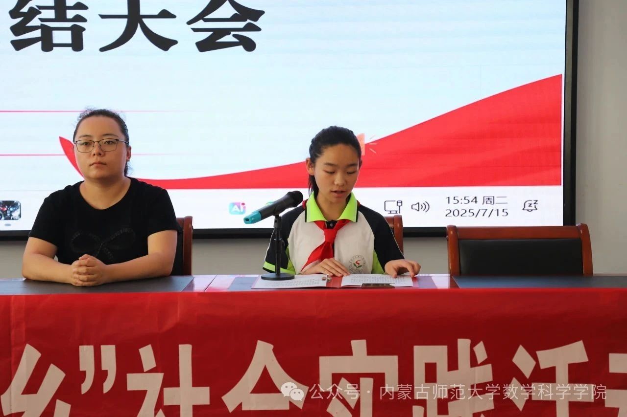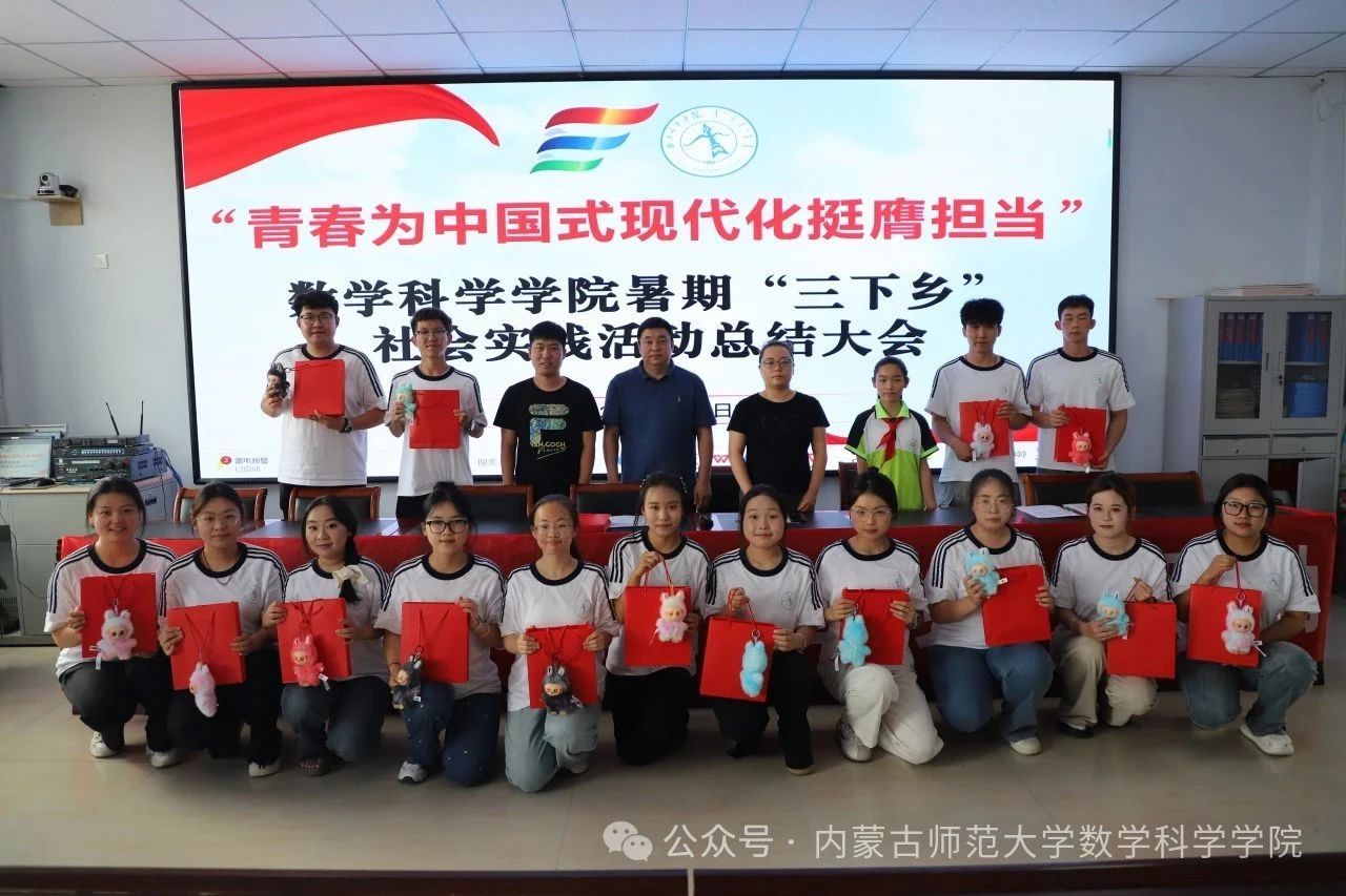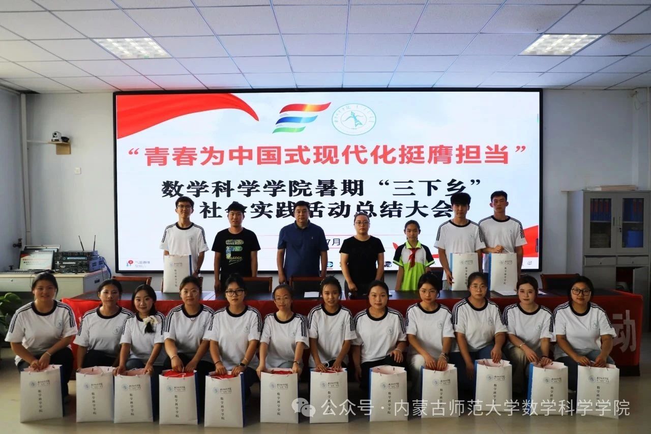 7月15日下午,数学科学乐竞体育-中国一站式服务官网2025年暑期“三下乡”社会实践活动总结大会在四子王旗实验小学召开。本次大会以“青春为中国式现代化挺膺担当”为主题,全面回顾和总结了此次“三下乡”实践活动的丰硕成果,展现了青年学子在社会实践中“受教育、长才干、作贡献”的青春风采。