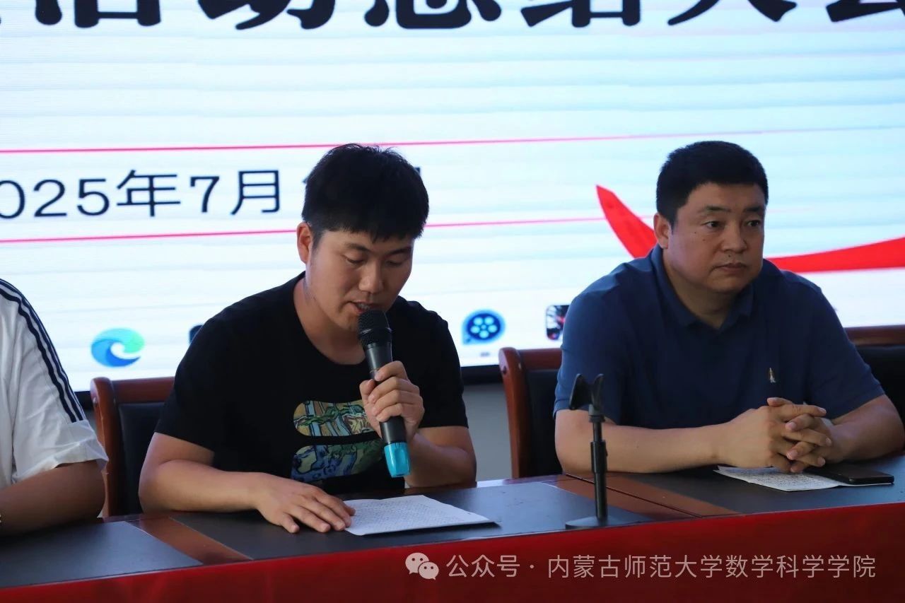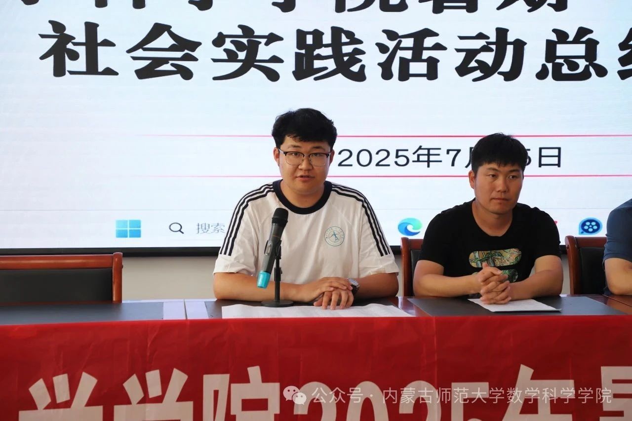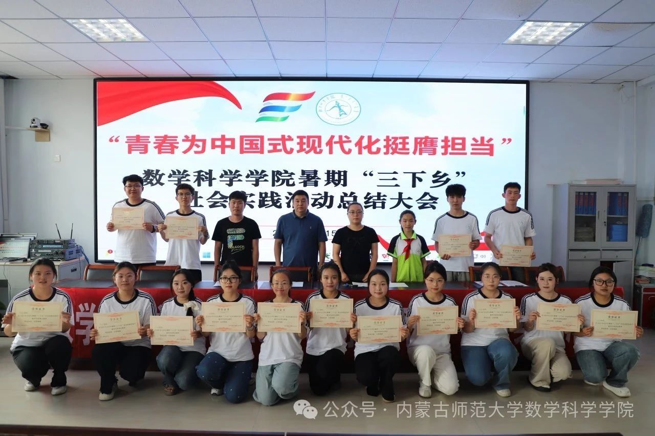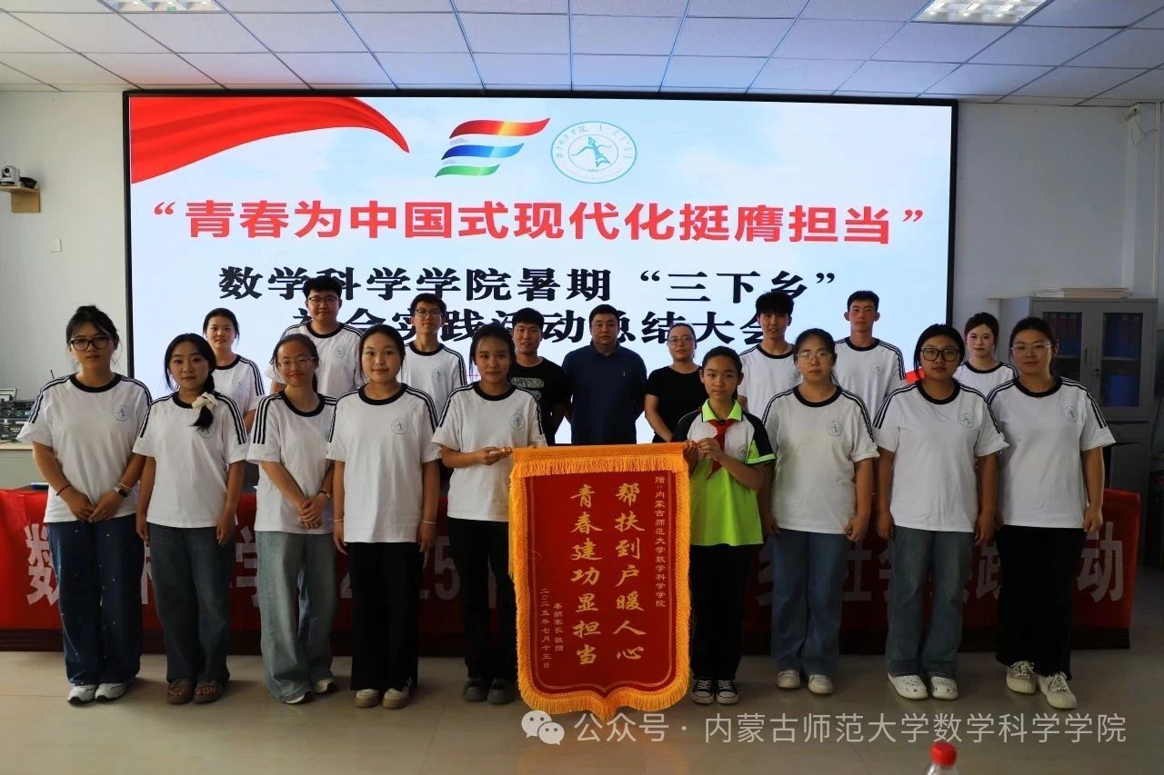 7月15日下午,数学科学乐竞体育-中国一站式服务官网2025年暑期“三下乡”社会实践活动总结大会在四子王旗实验小学召开。本次大会以“青春为中国式现代化挺膺担当”为主题,全面回顾和总结了此次“三下乡”实践活动的丰硕成果,展现了青年学子在社会实践中“受教育、长才干、作贡献”的青春风采。