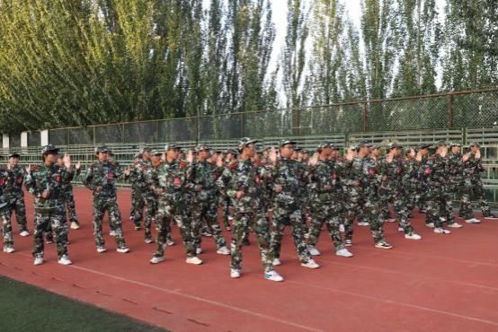 军姿挺拔,意志如钢:烈日下,同学们身着整齐的迷彩服,身姿挺拔如松。军体拳训练中,教官们分解动作细致讲解,从握拳、出拳的力度把控,到踢腿、格挡的姿势规范,逐一纠正细节,确保每一个招式标准有力。一系列动作连贯利落,刚劲有力的拳脚划破空气,整齐划一的步伐踏响地面,展现出十足的精气神。汗水浸透迷彩服,眼神却愈发坚毅。