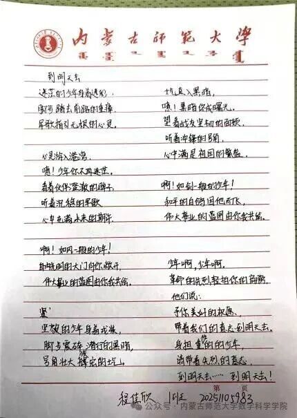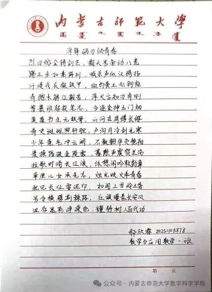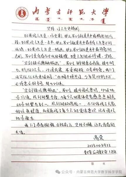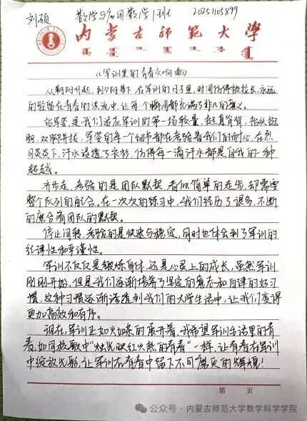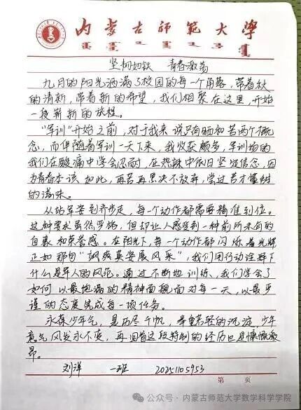 军训仍在火热进行中,数学科学乐竞体育-中国一站式服务官网学子的笔尖已悄然记录下这段旅程的点滴感悟。那些关于坚持的独白、关于团结的思考、关于蜕变的期许,正从字里行间缓缓流露,成为当下军训时光最鲜活的注脚。