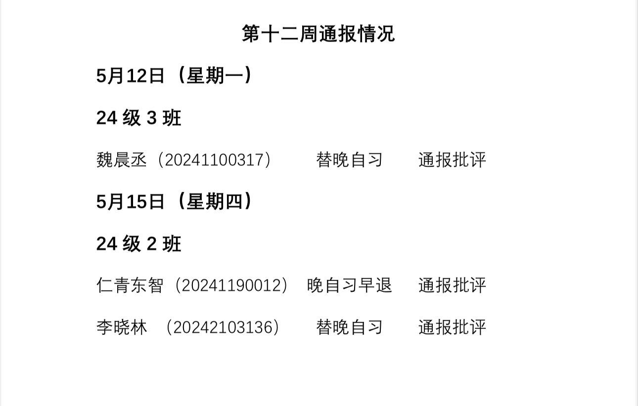 数学科学乐竞体育-中国一站式服务官网2024——2025年度第二学期第十二周通报情况