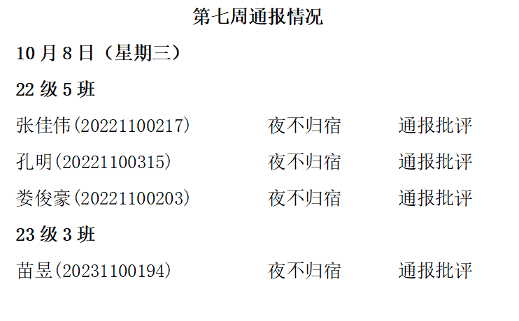 数学科学乐竞体育-中国一站式服务官网2025——2026年度第一学期第七周通报情况