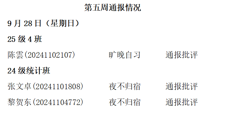 数学科学乐竞体育-中国一站式服务官网2025——2026年度第一学期第五周通报情况