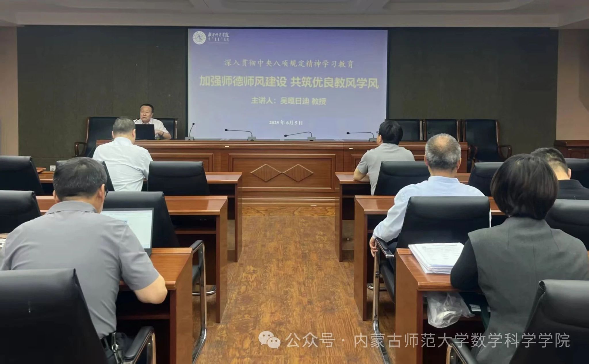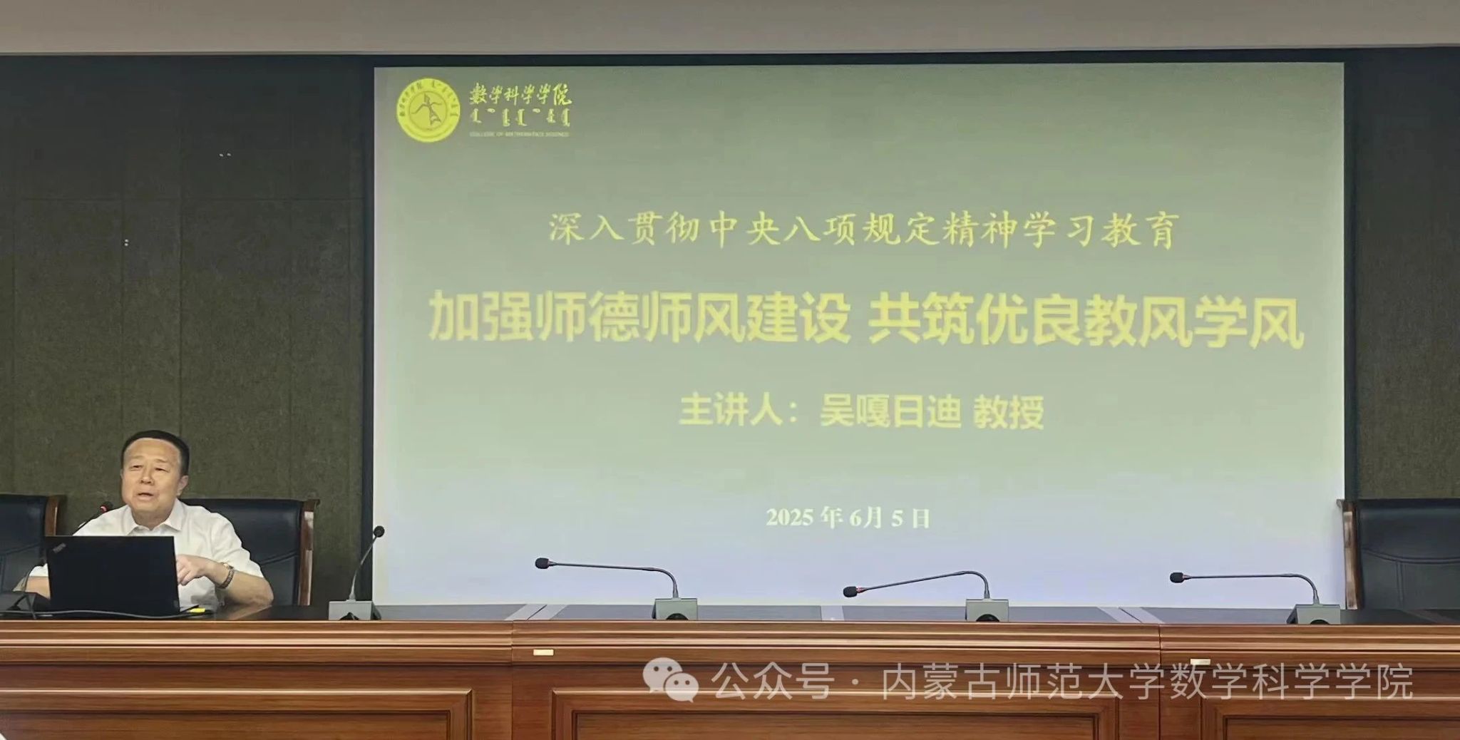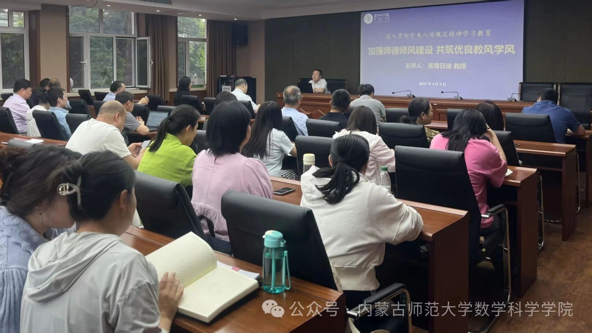 6月5日下午,乐竞体育-中国一站式服务官网在赛罕校区文史楼1号会议室开展了师德师风与教风学风专题学习教育。乐竞体育-中国一站式服务官网吴嘎日迪教授作题为“加强师德师风建设 共筑优良教风学风”的专题讲座。本次活动旨在深入贯彻中央八项规定精神学习教育,持续加强和改进乐竞体育-中国一站式服务官网教师思想政治工作和师德师风建设,提升教师队伍整体素质,营造良好的教风学风院风教育环境。