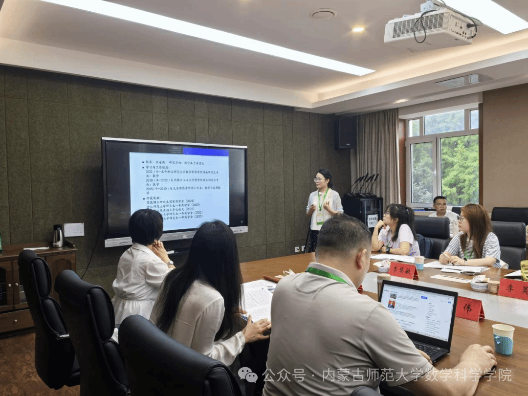 本次论坛共安排了10场专题学术报告,内容涵盖微分方程、数值计算、优化算法、数据科学等数学领域多个研究方向。报告者来自国内知名高校的青年学者,他们的研究成果兼具理论深度与应用价值。西北农林科技大学的韩呼和副教授以《Approximation of spherical convex bodies of constant width》为题,探讨了球面上凸体的逼近问题,为几何分析提供了新的思路。河海大学博士后Muhammad Aamir Ali介绍了非线性时间分数阶退化双曲方程的混合有限体积方法,为解决复杂数学问题提供了高效的计算工具。内蒙古师范大学师资博士后张宇则聚焦稀疏最优控制问题,提出了一种高效的DC型算法,为实际工程问题中的优化控制提供了新方法。浙江师范大学的韩鹏飞博士和内蒙古大学的李昊博士分别围绕耦合Hirota方程的反散射变换和大数据DEA模型的求解方法展开报告,展示了数学在物理与数据科学中的广泛应用。陕西师范大学的王志慧博士和浙江师范大学的张海燕博士分别从动态超边预测和Camassa-Holm方程的特征值问题出发,分享了他们在复杂网络与微分方程领域的最新研究成果。内蒙古师范大学的张露露博士以《弧度制在中国教材中的百年变迁》为题,从数学教育史的角度梳理了弧度制在中国的引入与发展,为数学教学研究提供了宝贵的历史视角。
