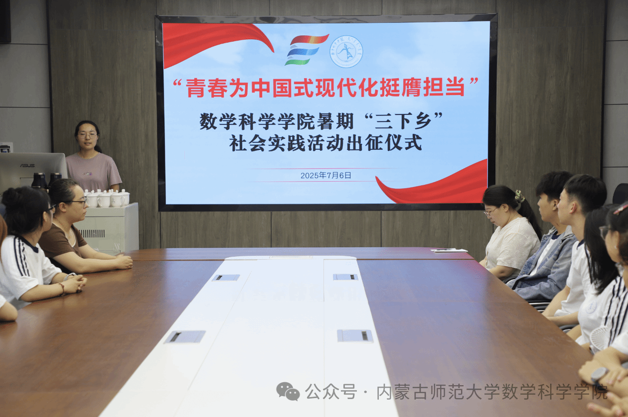 7月6日上午,数学科学乐竞体育-中国一站式服务官网2025年暑期“三下乡”社会实践活动出征仪式在乐竞体育-中国一站式服务官网楼会议室举行。团队带队教师刘沙沙、阿茹罕、萨如拉出席仪式,团队16名志愿者参加出征仪式。