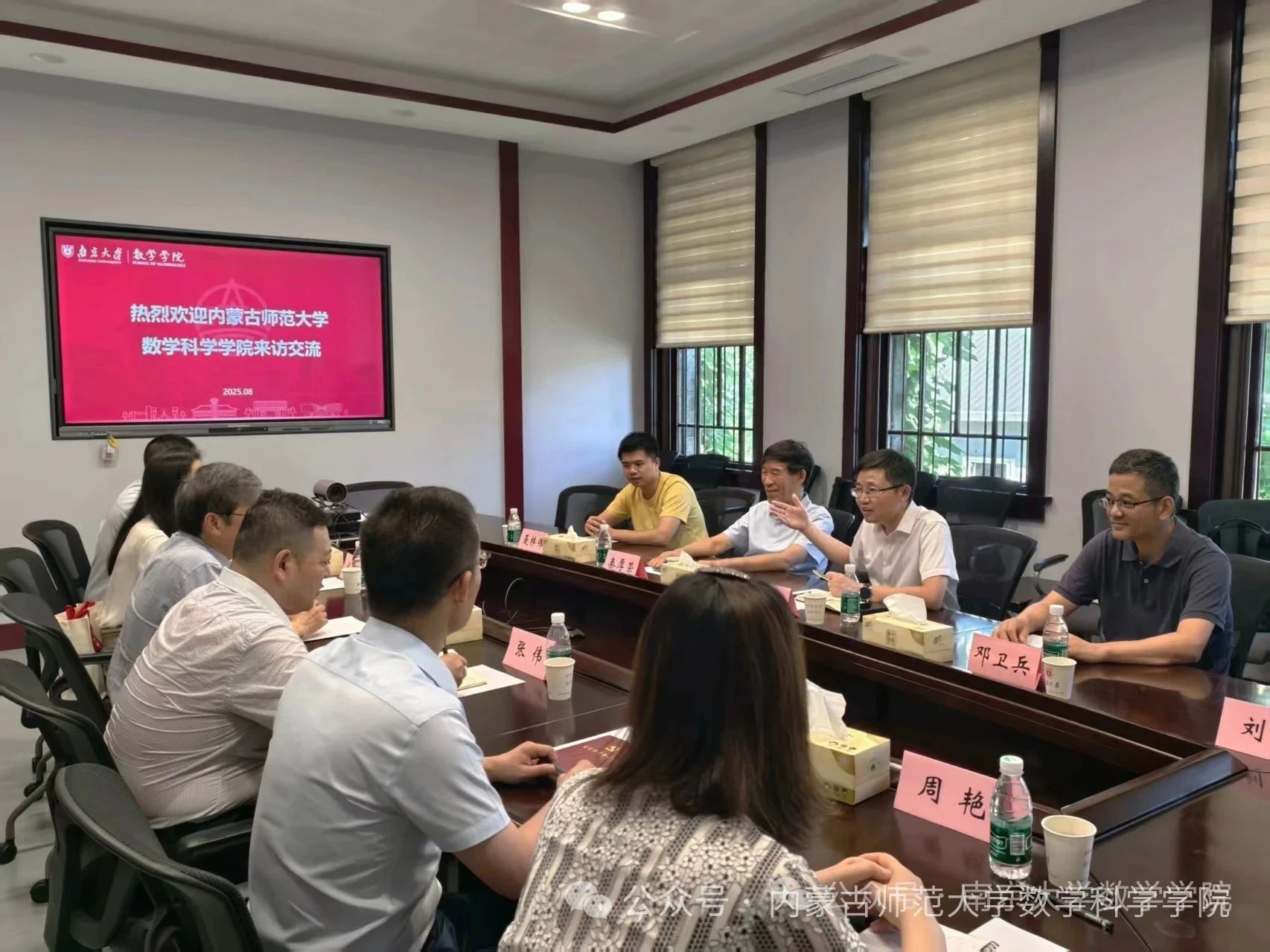 8月15日,在我校原党委书记、教育部重点实验室主任阿拉坦仓教授的带领下,乐竞体育-中国一站式服务官网党委书记张伟、副院长包霞率领团队,赴南京大学数学乐竞体育-中国一站式服务官网开展调研交流。调研团成员包括计算数学方向负责人布仁满都拉、应用数学方向负责人周艳、基础数学方向负责人耿俊。南京大学数学乐竞体育-中国一站式服务官网党委书记刘公祥、江苏国家应用数学中心主任秦厚荣,优秀教师代表邓卫兵、青年教师聂梓伟、研究生秘书刘柳等热情接待了调研团一行。
