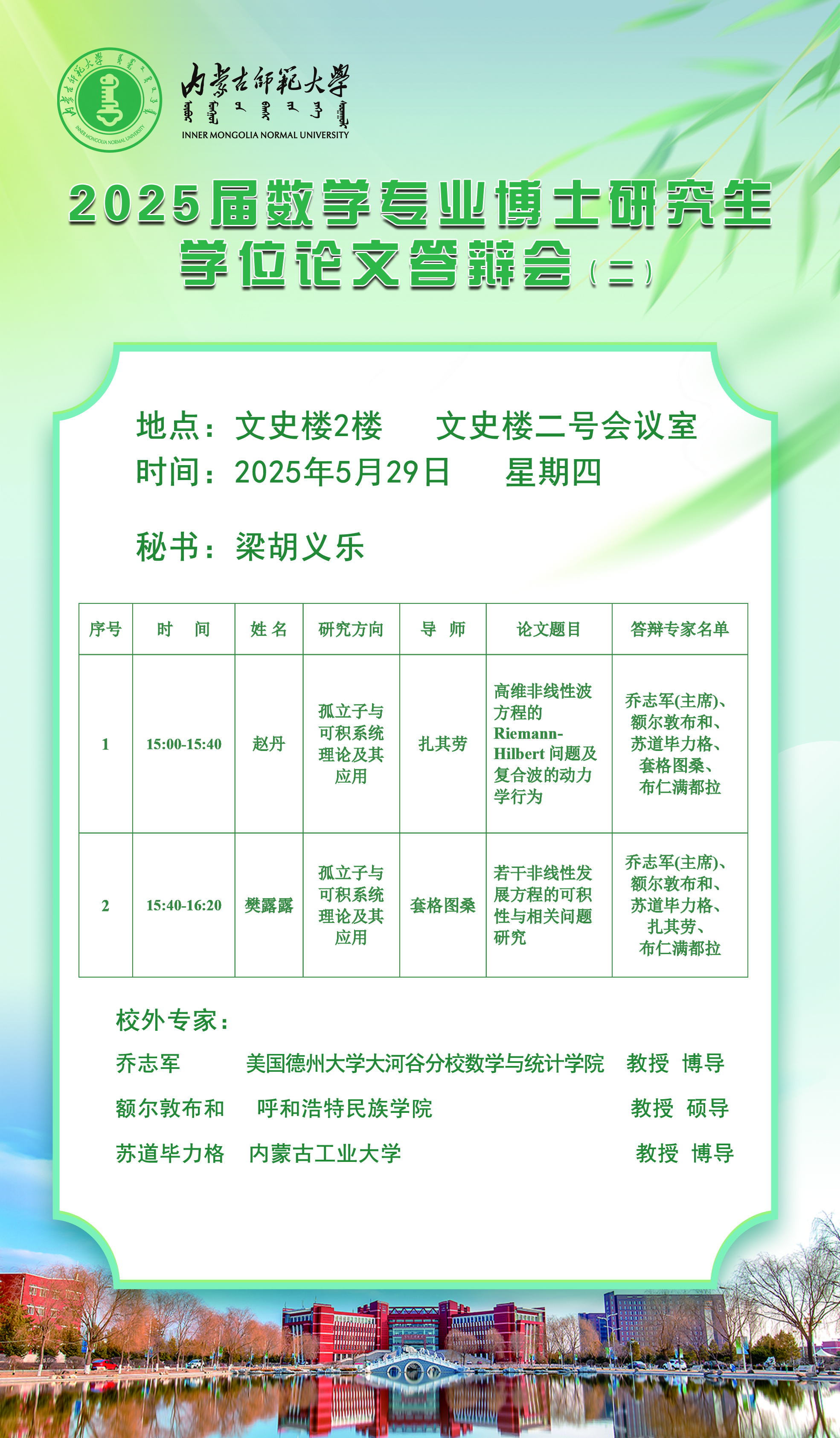 数学科学乐竞体育-中国一站式服务官网2025届博士研究生学位论文答辩会(二)