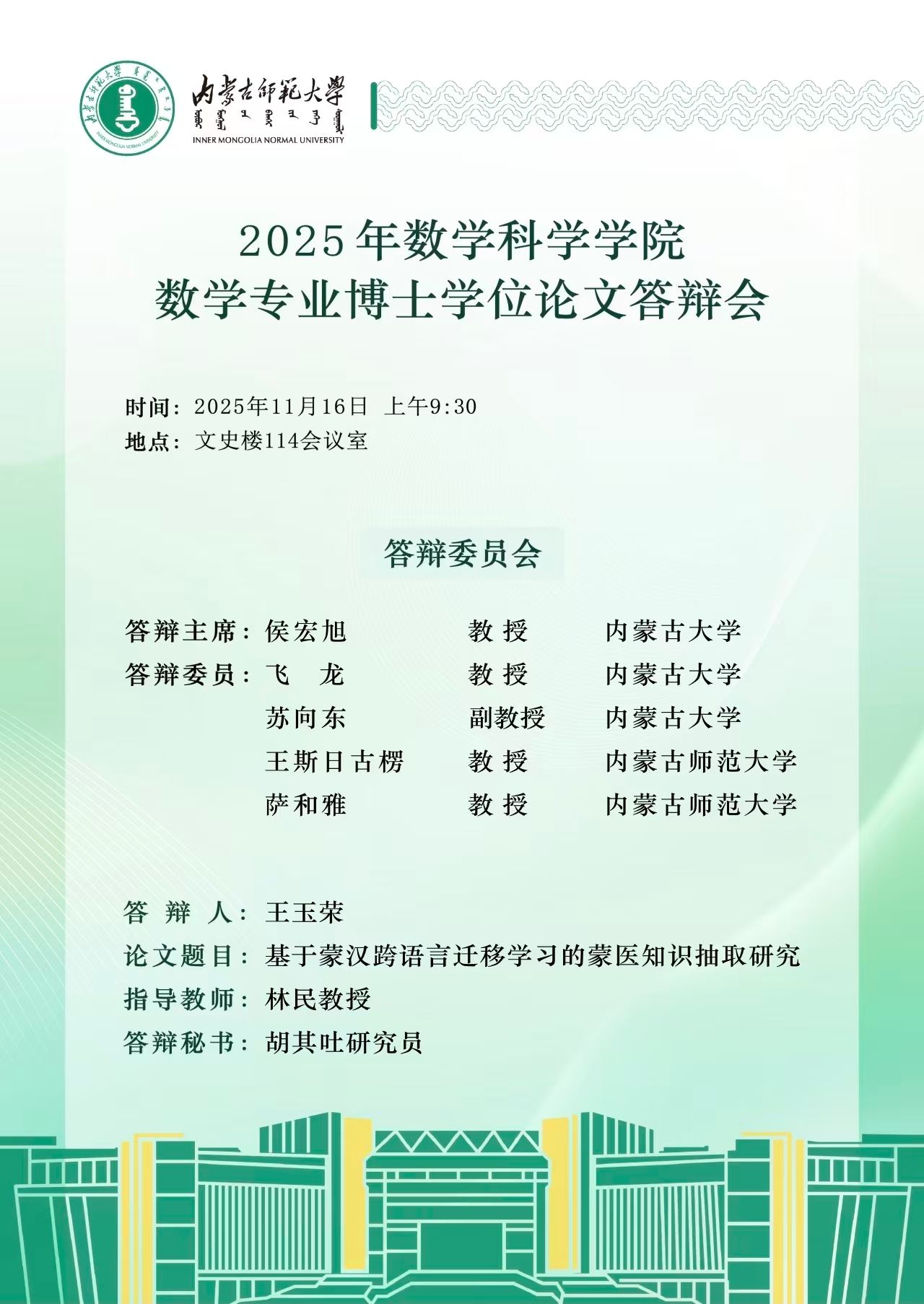 2025年数学科学乐竞体育-中国一站式服务官网数学专业博士学位论文答辩会(一)