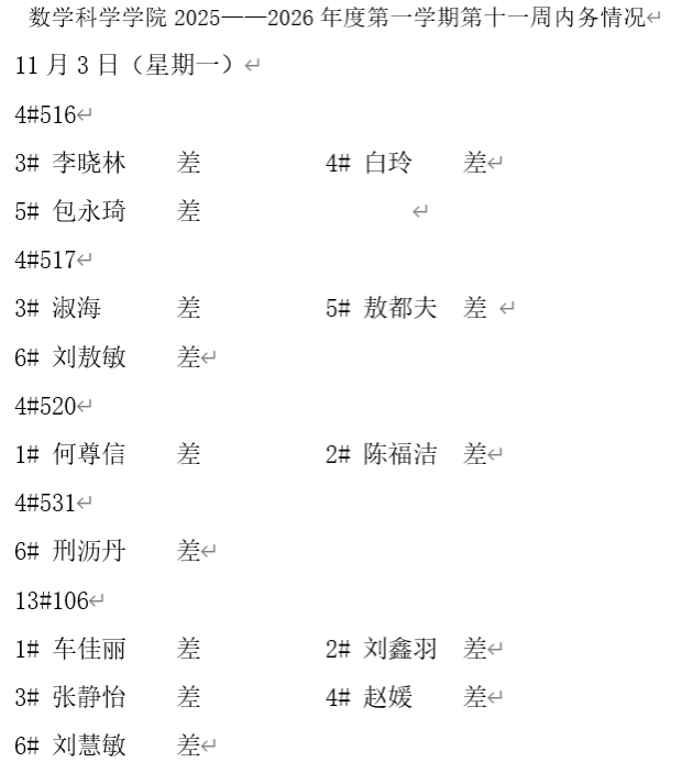 数学科学乐竞体育-中国一站式服务官网2025——2026年度第一学期第十一周内务情况
